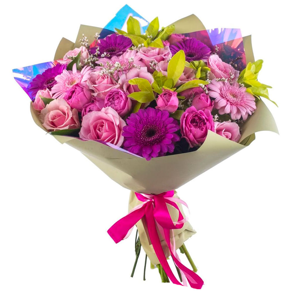 На фото представлен образец. Объем букета зависит от выбранного вами размера. Точное количество цветов и цветовую гамму вы можете уточнить у менеджера по телефону.