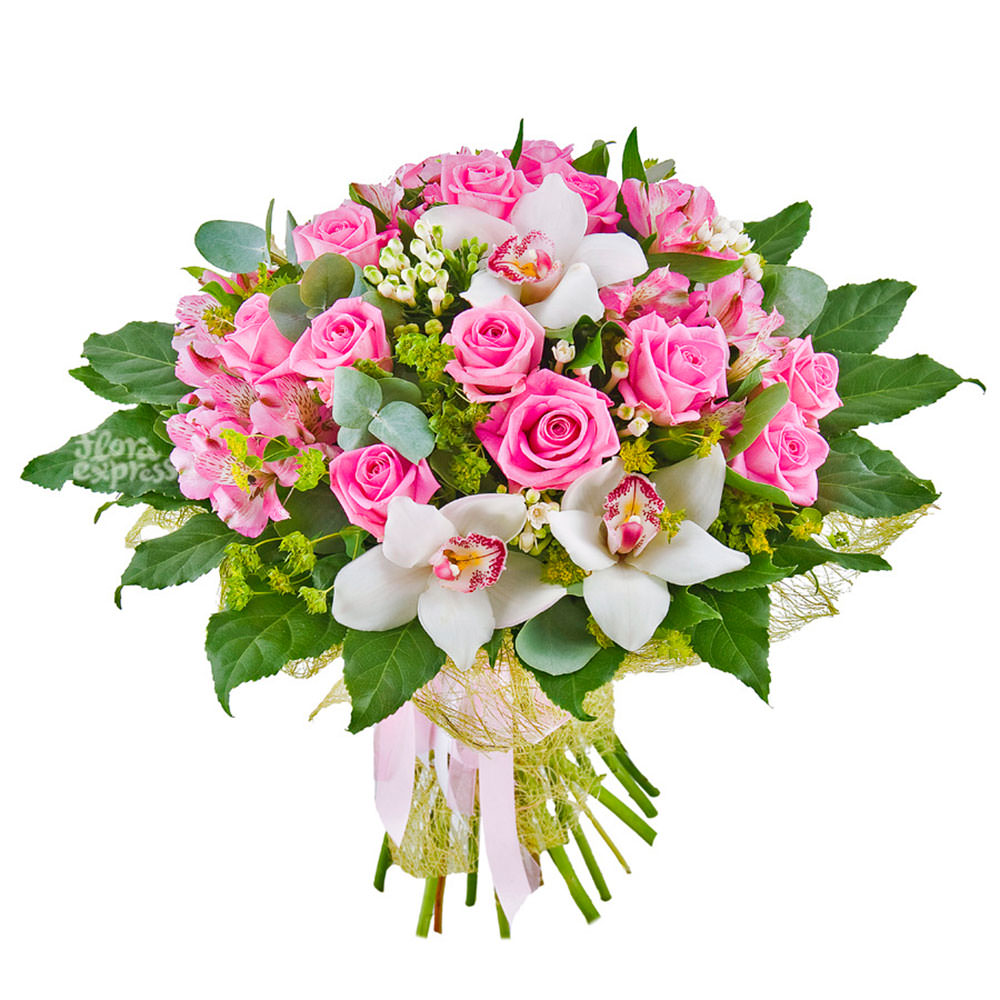 На фото представлен образец. Объем букета зависит от выбранного вами размера. Точное количество цветов и цветовую гамму вы можете уточнить у менеджера по телефону.