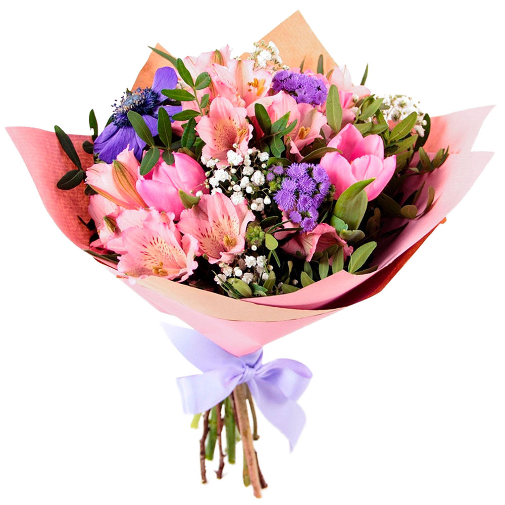 На фото представлен образец. Объем букета зависит от выбранного вами размера. Точное количество цветов и цветовую гамму вы можете уточнить у менеджера по телефону.