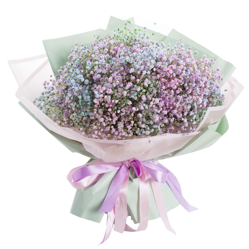 Гипсофилы розовые, синие, зеленые: