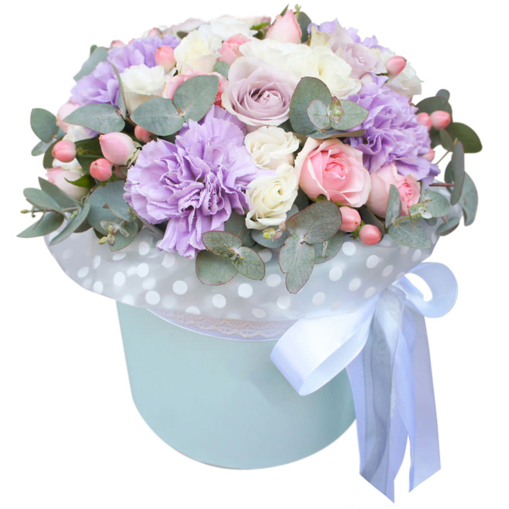 На фото представлен образец. Объем коробки зависит от выбранного вами размера. Точное количество цветов и цветовую гамму вы можете уточнить у менеджера по телефону.