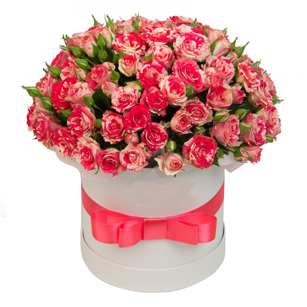 На фото представлен образец. Объем коробки зависит от выбранного вами размера. Точное количество цветов и цветовую гамму вы можете уточнить у менеджера по телефону.