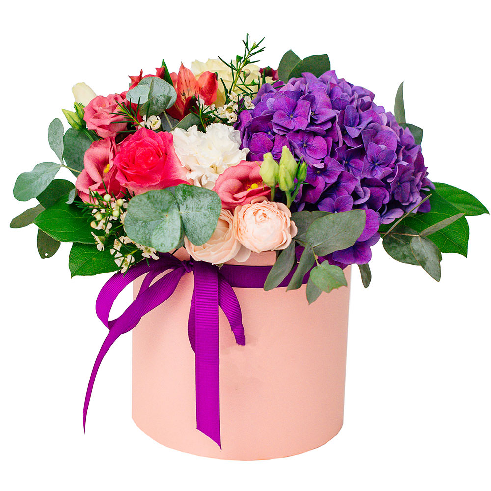 На фото представлен образец. Объем коробки зависит от выбранного вами размера. Точное количество цветов и цветовую гамму вы можете уточнить у менеджера по телефону.